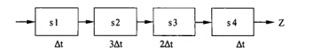 某4级流水线如下图所示,若每3At向该流水线输入一个任务,连续输入4个,则该流水线的加速比为(18)。