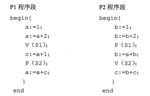 最简单的同步形式是进程A在另一个进程B到达L2以前,不应前进到超过点L1,这样就可以使用如下程序: