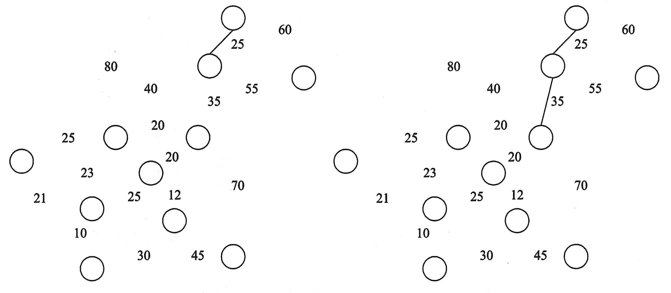 例如,使用普里姆算法构造上图的最小生成树的过程如下5个图所示。