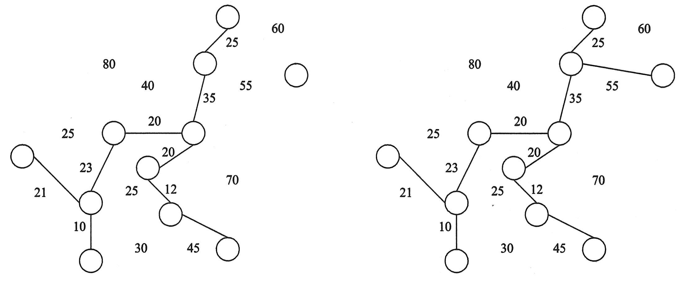 一个连通且无回路的无向图称为树。在树中度数为1的节点称为树叶,度数大于1的节点称为分枝点或内节点。