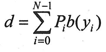 其中b(yi)是分配给码元Yi的比特数,理论上应取byi)=-log2pi,实际上在应用中很难估计出{p0p1,…,pn-1}。因此一般取by0)=by1)=…=byN-1)。这样所得的d必然大于H,由此带来的冗余称为信息熵冗余或编码冗余。