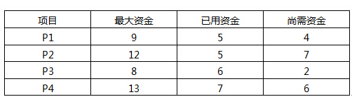 某风险投资公司拥有的总资金数为25,分期为项目P1、P2、P3、P4投资,各项目投资情况如下表所示。公司的可用资金数为(50)。若P1和P3分别申请资金数1和2,则公司资金管理处(51)。