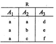 假设关系R(A1A2A3)上的一个分解为ρ={(A1,A2),(A1,A3)},下表是关系R上的一个实例,根据实例推出R的函数依赖集F为(42),分解ρ(43)。