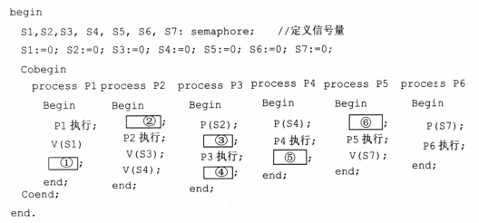 最简单的同步形式是进程A在另一个进程B到达L2以前,不应前进到超过点L1,这样就可以使用如下程序: