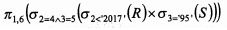 在关系R(A1,A2 ,A3) 和S(A2,A3 ,A4) 上进行关系运算,与该关系表达式等价的是(44)。