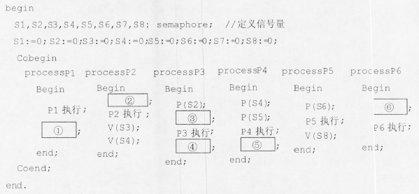 最简单的同步形式是进程A在另一个进程B到达L2以前,不应前进到超过点L1,这样就可以使用如下程序: