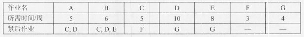 某项目有A?H八个作业,各作业所需时间(单位:周)以及紧前作业如下表: