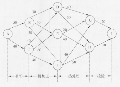 加工某种零件需要依次经过毛坯、机加工、热处理和检验四道工序。各道工序有多种方案可选,对应不同的费用。下图表明了四道工序各种可选方案(连线)的衔接关系,线旁的数字表示该工序加工一个零件所需的费用(单位:元)。从该图可以推算出,加工一个零件的总费用至少需要( )元。