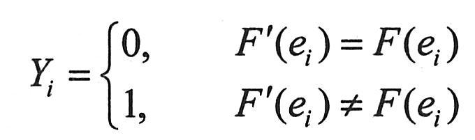 设需求说明所规定的功能为F,而程序实现的功能为F′,预先确定的输入集为E={eii=1,2,…,n},令导致软件差错的所有输入的集合为Ee,即Ee={ejejEandF′(ej)<>Fej)},则软件运行一次出现差错概率为: