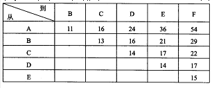 下表记录了六个结点A、B、C、D、E、F之间的路径方向和距离。从A到F的最短距离是( )。