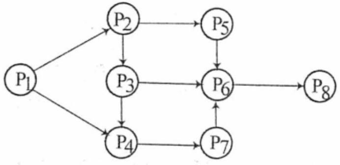 前趋图是一个有向无环图,记为→={(Pi,Pj)pi完成时间先于Pj开始时间}。假设系统中进P={P1,P2,P3,P4,P5,P6,P7,P8},且进程的前趋图如下: