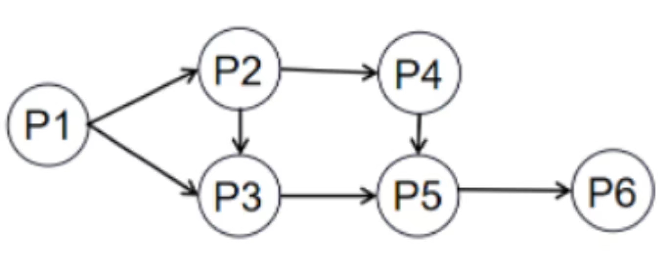 进程 P1、P2、P3、P4、P5 和 P6 的前趋图如下所示: