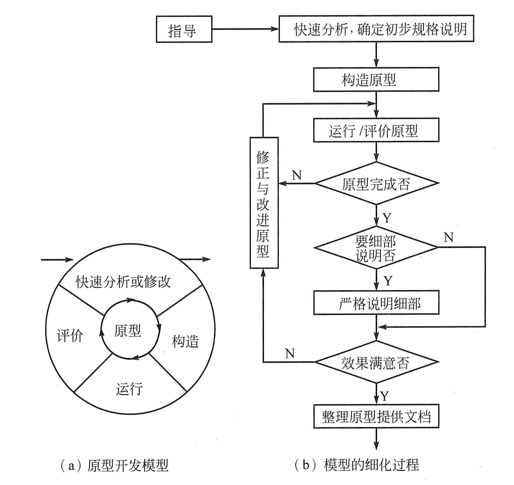 原型的开发和使用过程叫做原型生存期。下图(a)是原型开发模型,下图(b)是模型的细化过程。