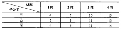 某公司需要将4吨贵金属材料分配给下属的甲、乙、丙三个子公司(单位:吨)。 据测算,各子公司得到这些材料后所能获得的利润(单位:万元)见下表: