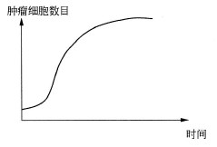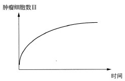 研究表明,肿瘤的生长有以下规律:当肿瘤细胞数目超过1011时才是临床可观察的;在肿瘤生长初期,几乎每隔一定时间就会观测到肿瘤细胞数量翻一番;在肿瘤生长后期,肿瘤细胞的数目趋向某个稳定值。为此,图(69)反映了肿瘤的生长趋势。