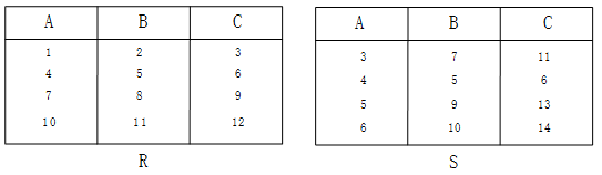 给定元组演算表达式R*={t│(Эu)(R(t)∧S(u)∧t[3]<u[2])} ,若关系R、S如下图所示,则( )。