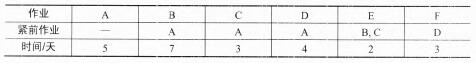 某工程项目包括六个作业A~F,各个作业的衔接关系以及所需时间见下表,作业D最多能拖延   (70)   天,而不会影响该项目的总工期。