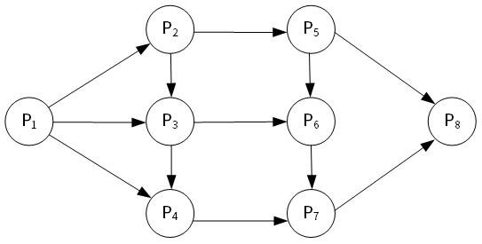 前趋图(Precedence Graph)是一个有向无环图,记为:→={(Pi,Pj)|Pimust complete before pj may start},假设系统中进程P={P1,P2,P3,P4,P5,P6,P7,P8},且进程的前趋图如下图所示。
