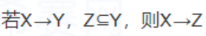 (2)分解规则:若X→Y在R上成立,且ZY,则X→Z在R上成立。