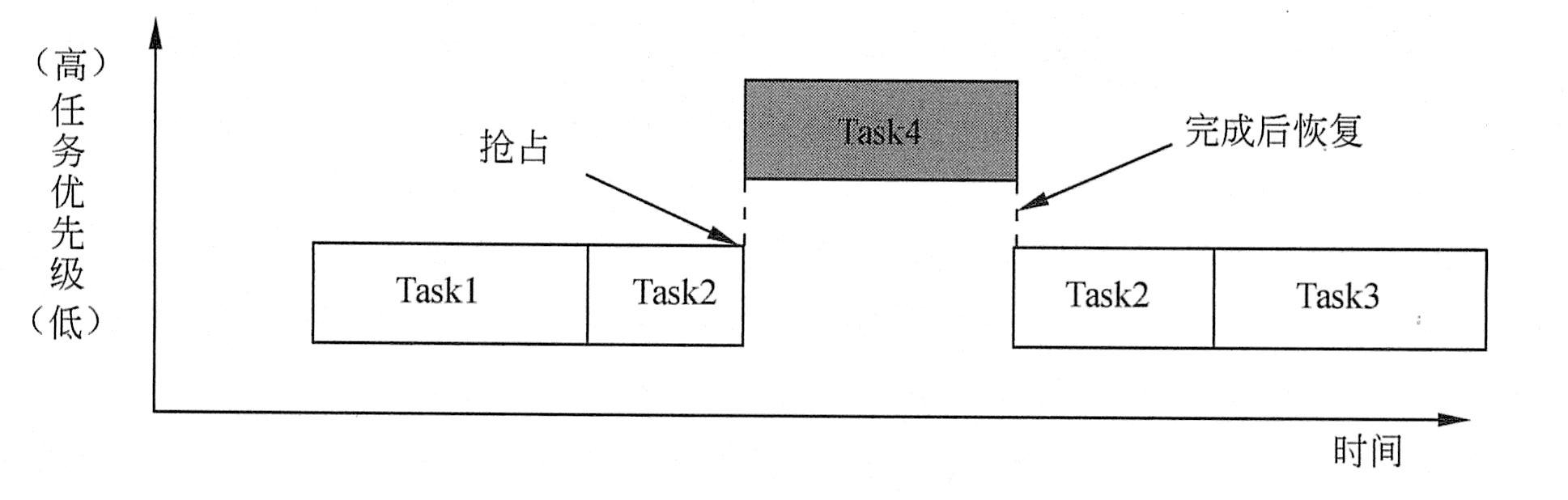 (3)系统采用抢占式调度,总是优先级最高且就绪的任务被执行。