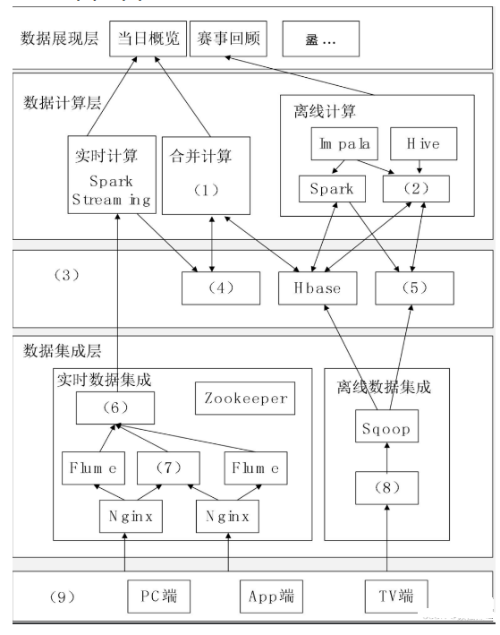 (9 分)下图1给出了某网奥运的大数据架构图,请根据下面的(a)~(n)的相关技术,判断这些技术属于架构图的哪个部分,补充完善下图1的(1)-(9)的空白处.