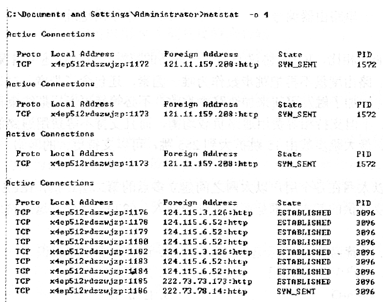 (4)netstat -a。本选项显示一个所有的有效连接信息列表,包括已建立的连接(ESTABLISHED),也包括监听连接请求的那些连接。