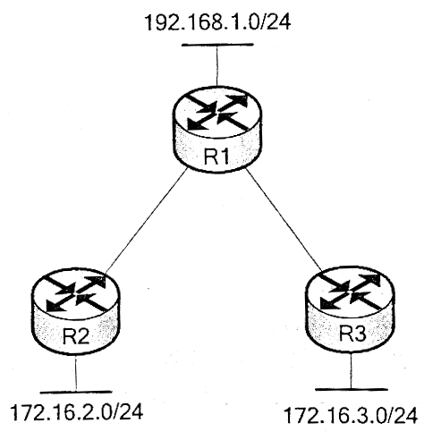 网络拓扑图如下所示,三台路由器上均运行RIPv1协议,路由协议配置完成后,测试发现从R1 ping R2 或者R3的局域网,均有50%的丢包,出现该故障的原因可能是( )。