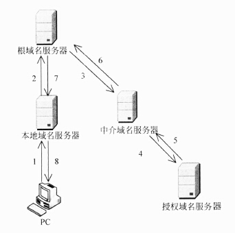 主机PC对某个域名进行查询,最终由该域名的授权域名服务器解析并返回结果,查询过程如下图所示。这种查询方式中不合理的是(29)。