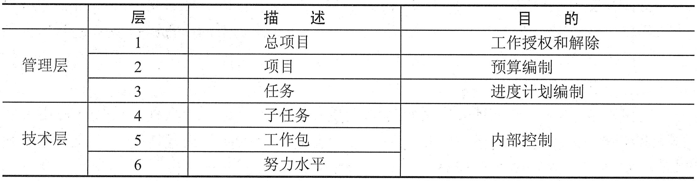 WBS的上面3层通常由客户指定,不应该和具体的某个部门相联系,下面3层由项目组内部进行控制。这样分层的特点有:
