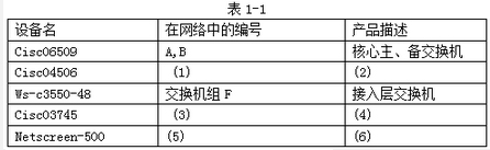 根据图1-1,对该网络主要设备清单表1-1所示内容补充完整。