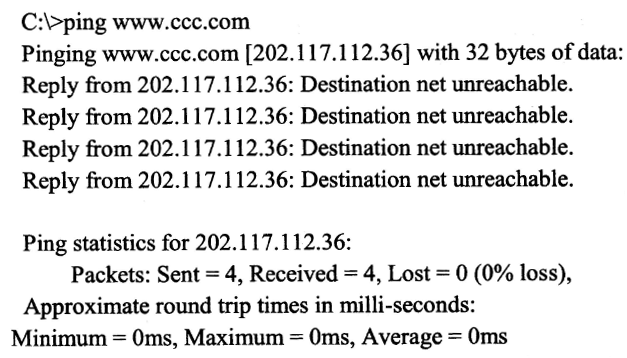 局域网中仅某台主机上无法访问域名为www.ccc.com的网站(其他主机访问正常),在该主机上执行ping命令时有显示信息如下: