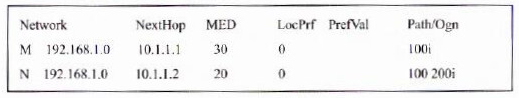 路由器收到包含如下属性的两条BGP路由,根据BGP选路规则,()。