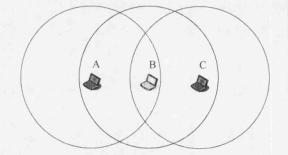 由无线终端组成的MANET网络,与固定局域网最主要的区别是(23),在下图所示的由A、B、C三个结点组成的MANET中,圆圈表示每个结点的发送范围,结点A和结点C同时发送数据,如果结点B不能正常接收,这时结点C称为结点A的(24)。