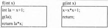 函数f、g的定义如下,执行表达式“y = f(2)”的运算时,函数调用g(la)分别采用引用调用(call by reference)方式和值调用(call by value)方式,则该表达式求值结束后 y的值分别为( )。
