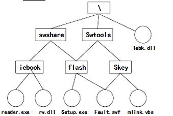 若某文件系统目录结构如下图所示,假设用户要访问文件fault.swf,且当前工作目录为swshare,则该文件的全文件名为(27) ,相对路径和绝对路径分别为 (28) 。