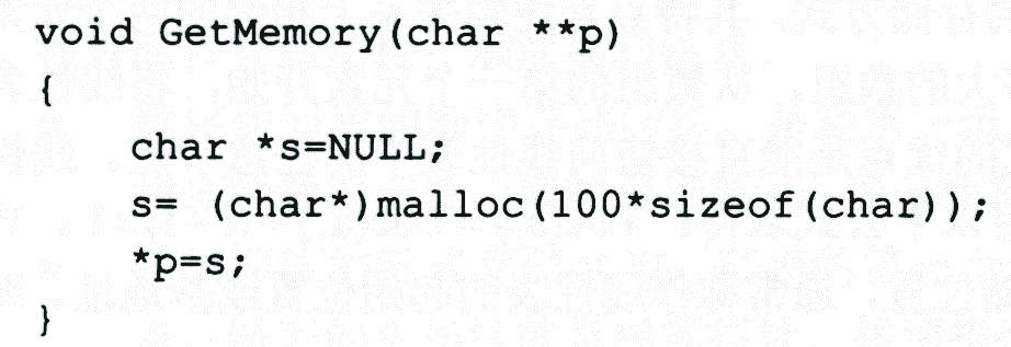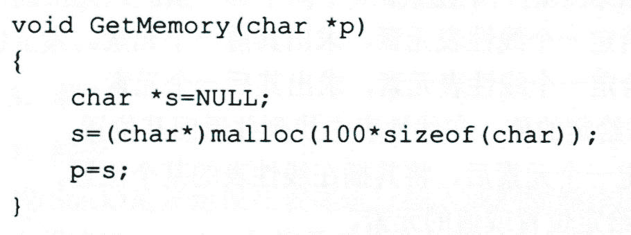 当指针作为函数参数传递时,需要特别注意C语言中的"值"传递原则。下例中的函数希望为指针p申请空间,但不能达到目的,为什么呢?