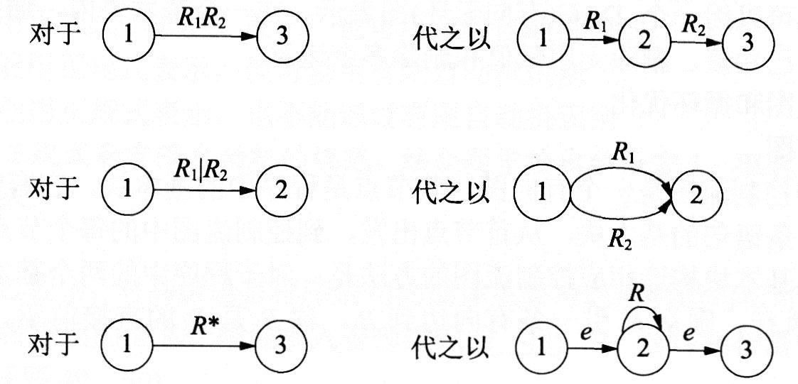仅由有限次地使用上述3个步骤定义的表达式才是∑上的正规式,其中运算符"|"".""*"分别称为"或""连接"和"闭包"。若两个正规式表示的正规集相同,则认为两者等价。