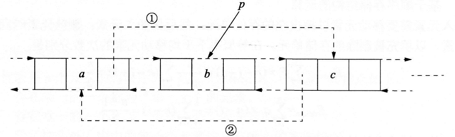 (4)在双向链表中删除节点时,指针的变化情况如下图所示。