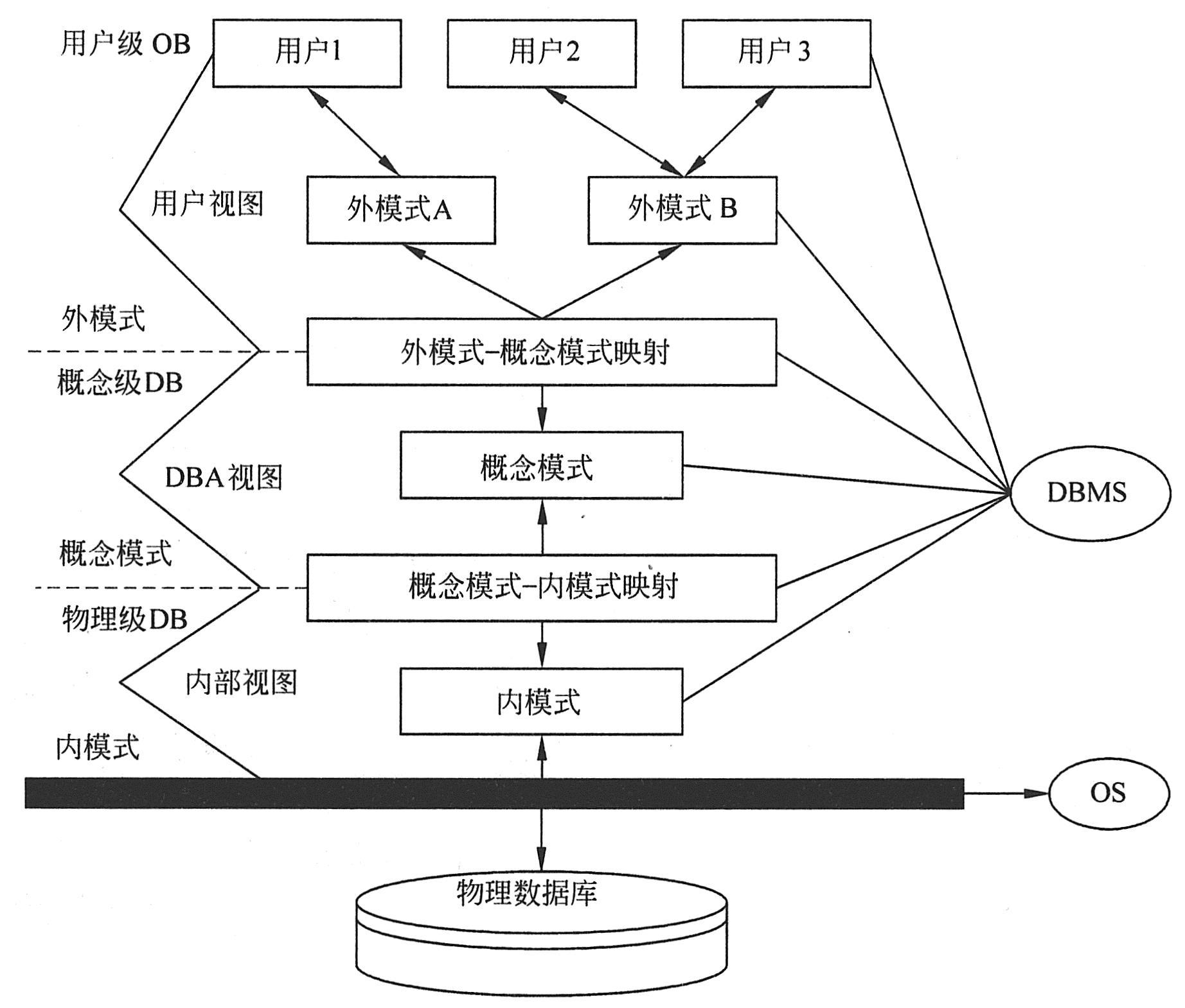 从下图可以看出,数据库系统可以分为外模式、概念模式和内模式三个层次。