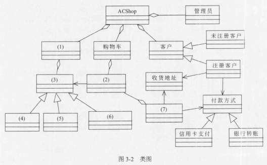问题:3.3   根据说明中的描述,给出图3-2中(1)~(7)所对应的类名。
