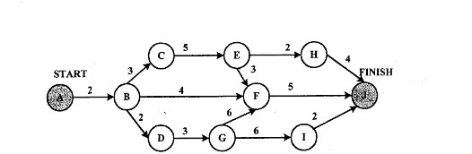某软件项目的活动图如下图所示,其中顶点表示项目里程碑,连接顶点的边表示包含的活动,边上的数字表示相应活动的持续时间(天),则完成该项目的最少时间为(17)天。活动BC和BF最多可以晚开始(18)天而不会影响整个项目的进度。