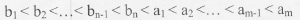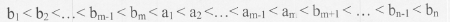 两个递增序列A和B的长度分别为m和n(m<n且m与n接近),将二者归并为一个长度为m+n的递增序列。当元素关系为( ),归并过程中元素的比较次数最少。