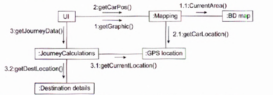 如下所示的图为UML的(42),用于展示某汽车导航系统中(43)。Mapping对象获取汽车当前位置(GPS Location)的消息为(44)。