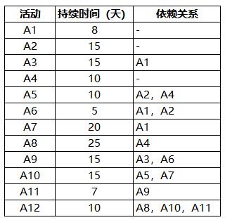 某项目的活动持续时间及其依赖关系如下表所示,则完成该项目的最少时间为 ( )天。