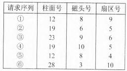 假设磁盘臂位于15号柱面上,进程的请求序列如下表所示。如果采用最短移臂调度算法,那么系统的响应序列应为(28)。