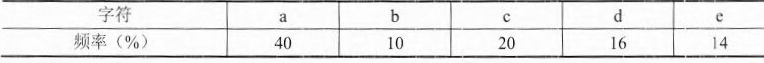 已知某文档包含5个字符,每个字符出现的频率如下表所示。采用霍夫曼编码对该文档压缩存储,则单词“cade”的编码为(64),文档的压缩比为(65)。