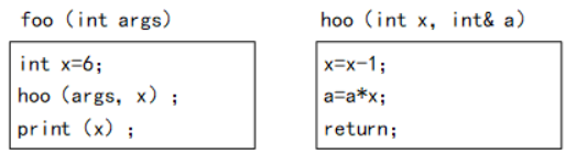 函数foo()、hoo()定义如下,调用函数hoo()时,第-个参数采用传值(call by value)方式,第二个参数采用传引用(call by reference)方式。设有函数调(函数foo(5),那么"print(x)”执行后输出的值为(  )。