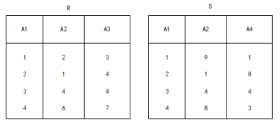 关系RS具有相同的关系模式。关系RS的交由属于R同时又属于S的元组构成的集合组成。关系RS的交记作