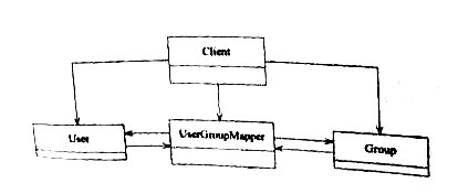 在某系统中,不同组(GROUP)访问数据的权限不同,每个用户(User)k可以是一个或多个组中的成员,每个组包含零个或多个用户。现要求在用户和组之间设计映射,将用户和组之间的关系由映射进行维护,得到如下所示的类图。该设计采用(42)模式,用一个对象来封装系列的对象交互;使用户对象和组对象不需要显式地相互引用,从而使其耦合松散,而且可以独立地改变它们之间的交互。该模式属于(43)模式,该模式适用:(44)。