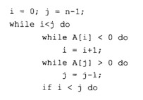 现要对n个实数(仅包含正实数和负实数)组成的数组A进行重新排列,使得其中所有的负实数都位于正实数之前。求解该问题的算法的伪代码如下所示,则该算法的时间和空间复杂度分别为(65)。